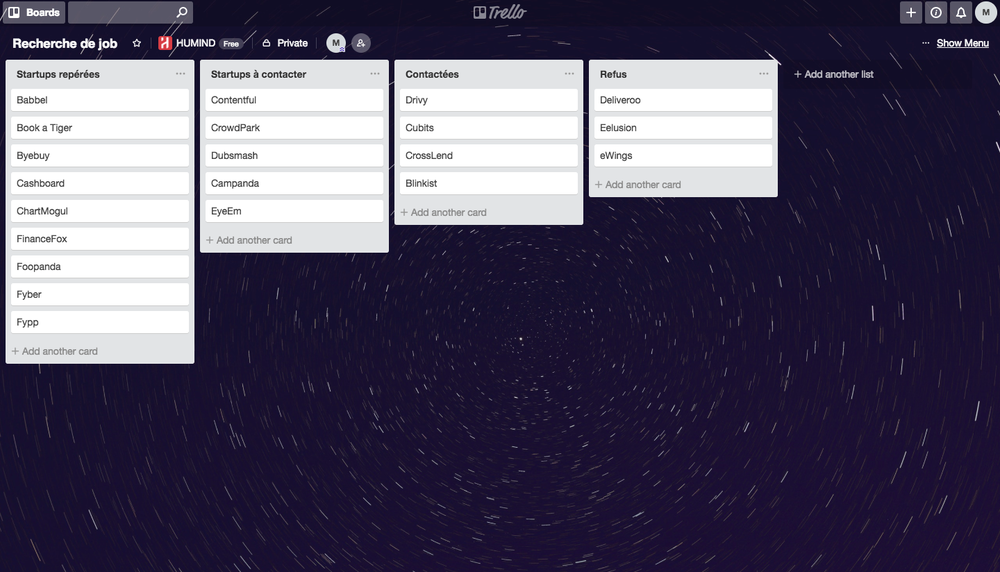 💡Trello : apprends à te servir de ce logiciel gratuit pour gérer tes candidatures. Trello est un logiciel de gestion de projet très simple que toute personne travaillant en Tech connaît. Une compétence de plus — 100% tech — à ajouter sur ton CV.